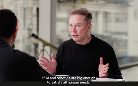 Elon Musk suggests that advances in AI and automation could significantly reduce the need for human labor.